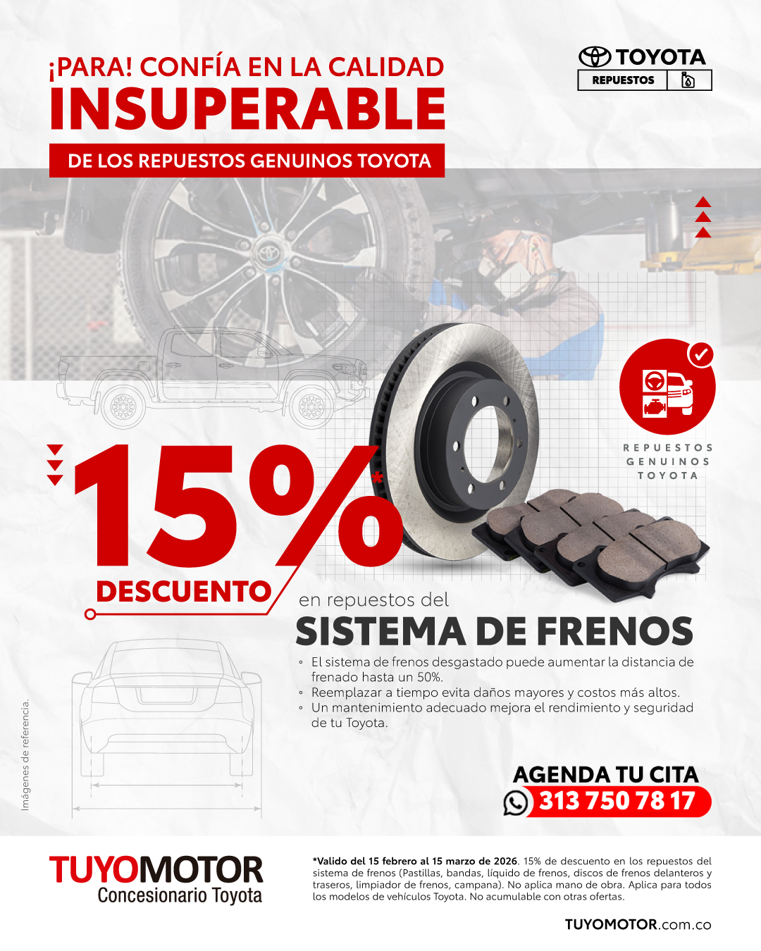 *Aplican T&C. Imágenes de referencia. Válido del 15 febrero al 15 marzo de 2026.15% de descuento en los repuestos del sistema de …